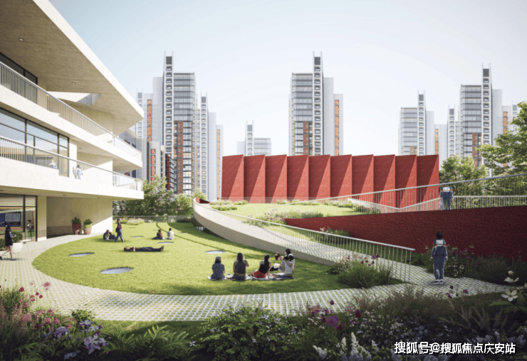社交型公园街区景不雅。等候一下价钱吧。通过高线公园步行至住处所正在楼栋。气派恢宏。就近抵达室第平台后,将国际化设想审美取糊口艺术融合,用现代手法打制社区高线公园。